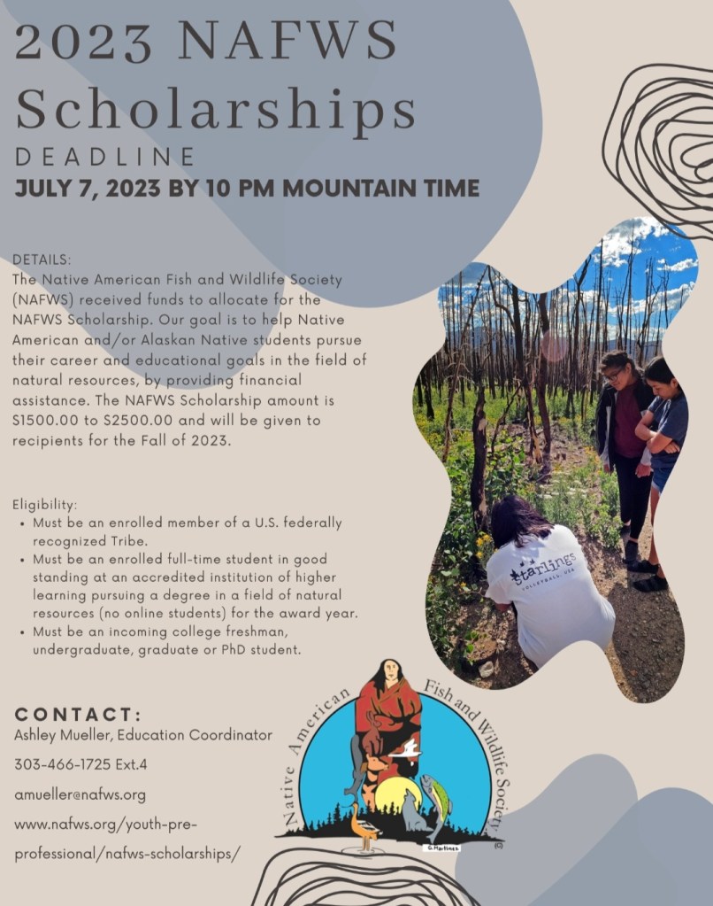 Native Forward Opportunities   Undergraduate and graduate scholarship opportunities are available to Native students from the Native Forward Scholars Fund. CLICK HERE to apply!