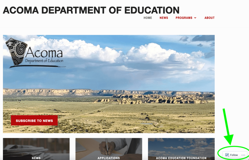 Congratulations, you have now subscribed to our news! A new WordPress webpage will open confirming your subscription. You will receive an email whenever a News post is published on the Acoma Department of Education website.